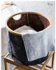 Kosh rrethor gri+bamboo për organizim të stiluar