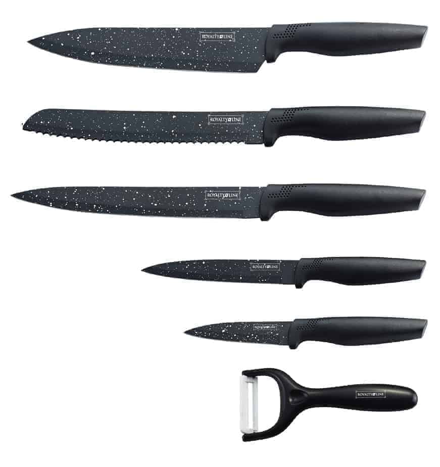 Sillni elegancë dhe efikasitet në kuzhinën tuaj me këtë set thikash Royalty Line, i përbërë nga 5 copë me veshje jo ngjitëse për një përvojë prerjeje superiore.