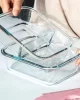 Këto tasa qelqi me ndarje janë të përshtatshëm për përdorim të përditshëm, në frigorifer ose për t’i marrë me vete. Ato janë të përshtatshme për të mbajtur lloje të ndryshme ushqimesh, si sallata, gatime, fruta apo perime. Përgatitni vakte të shëndetshme përpara kohe dhe ruajini në këto tasa të qëndrueshme. Ushqimi juaj do të mbetet i freskët dhe me shije për një kohë të gjatë.